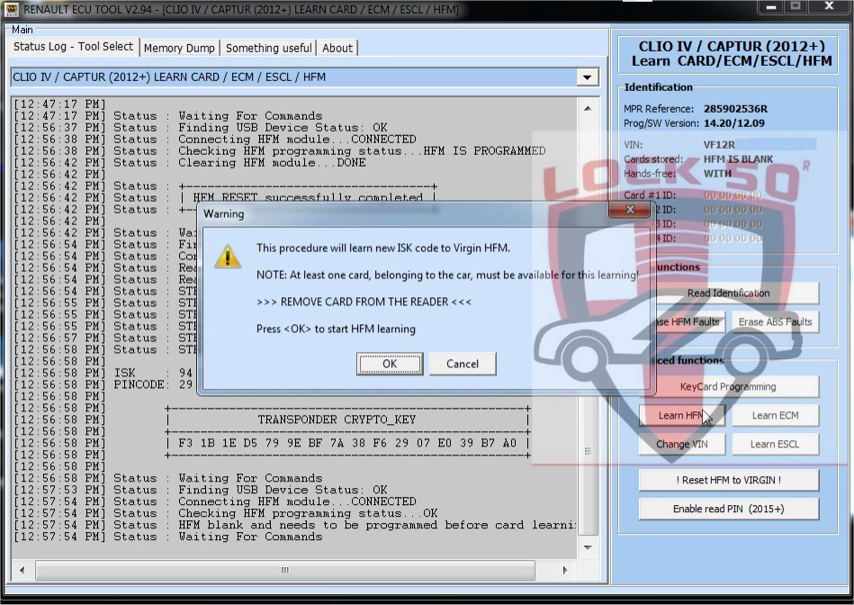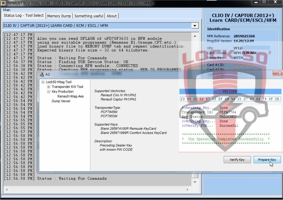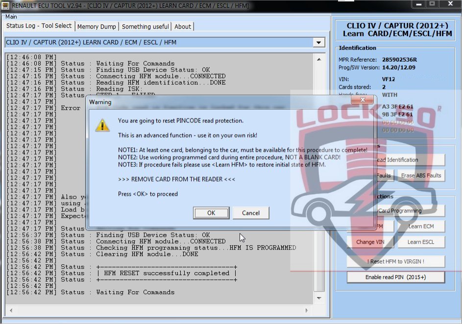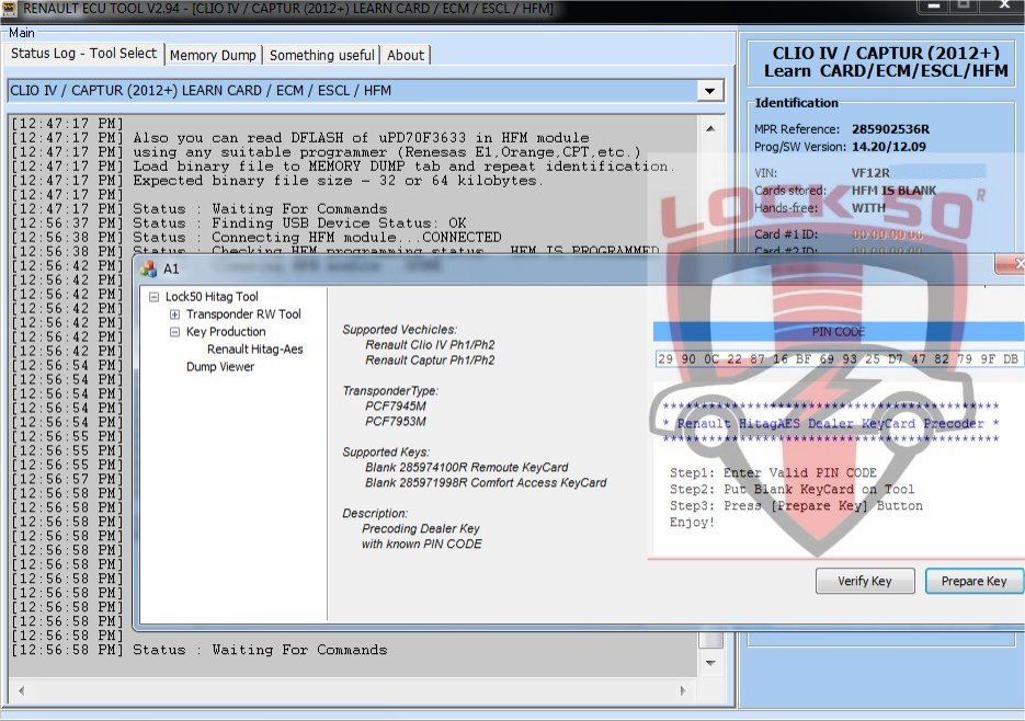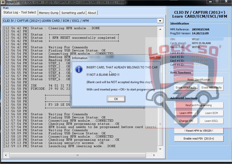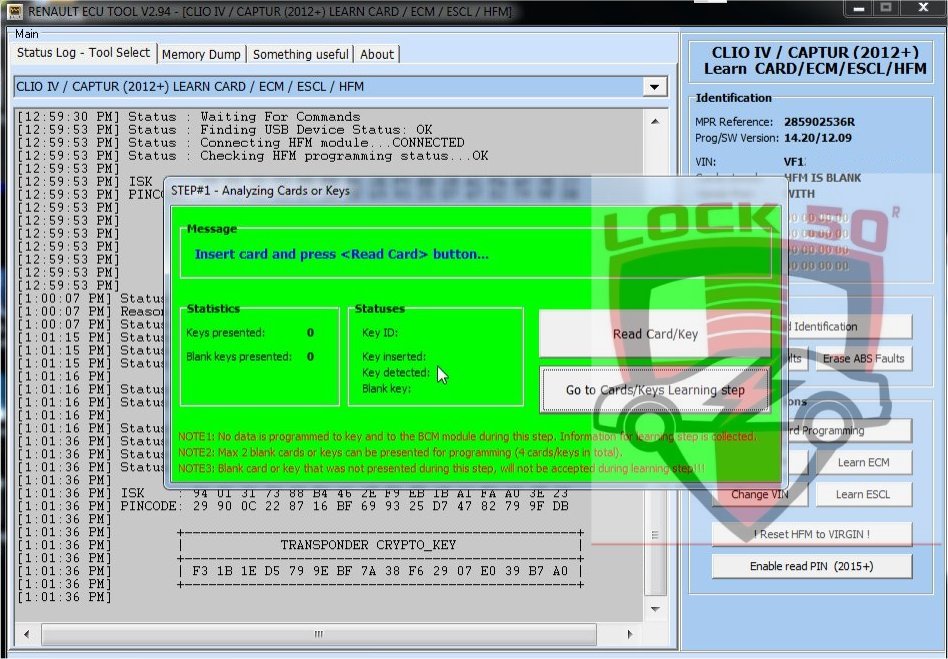 SW01 Renault Clio Captur Precoding Dealer Keycard with known PIN CODE Offline Soft